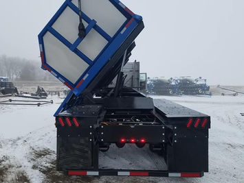 We offer side-dumps in many different options. All trailers come in a variety of sizes between 22′ and 36′, with 22′ and 30′ being the most popular. We also make truck-mounted boxes if you have a truck just needing a box; rather than a whole trailer; price includes mounting.