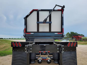 The Rief Design Side-Dumps utilize a square box to allow more trailer capacity, while being a shorter box for ease of handling. It also creates a more stable unload. You can unload up or downhill (within reason) and not tip the side-dump over like other models. The side-walls are made of stainless to increase longevity, avoid corrosion/rust, and to not allow sticking in the winter time. The floor is made of durable 1/2” UHMW plastic. The plastic is to stretch and compress allowing for a durable floor, no matter the material being hauled.